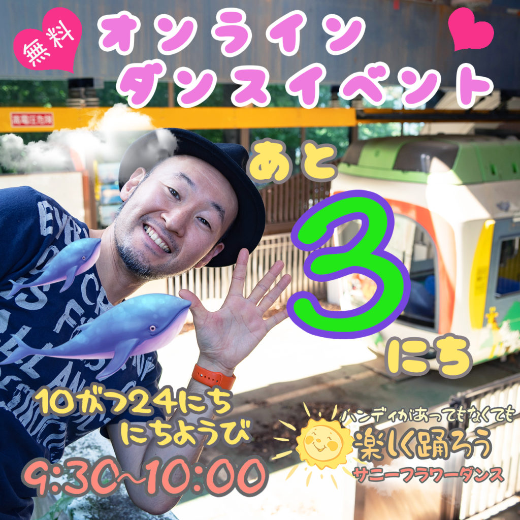 HOME > 無料ダンスイベント > 無料ダンスイベント ダンスが好きな小さなお子様のためのオンライン無料イベントまであと3日♪ 2026年1月11日 「おかあさんといっしょ」の楽曲や参加者の方からいただいたリクエスト曲を、時間のゆるす限りどんどん踊ります✨ ハンディがあってもなくても 子供でも大人でもみんなで一緒にダンスを通して楽しい朝の時間を過ごしましょう🎈 イベント詳細はこちらから👇 イベントの様子はこちら👇 ご参加まちしております🤗 🌸 活動拠点:東京、神奈川、千葉、静岡✨ 体験レッスンのお問い合わせはこちら ✨ -無料ダンスイベント